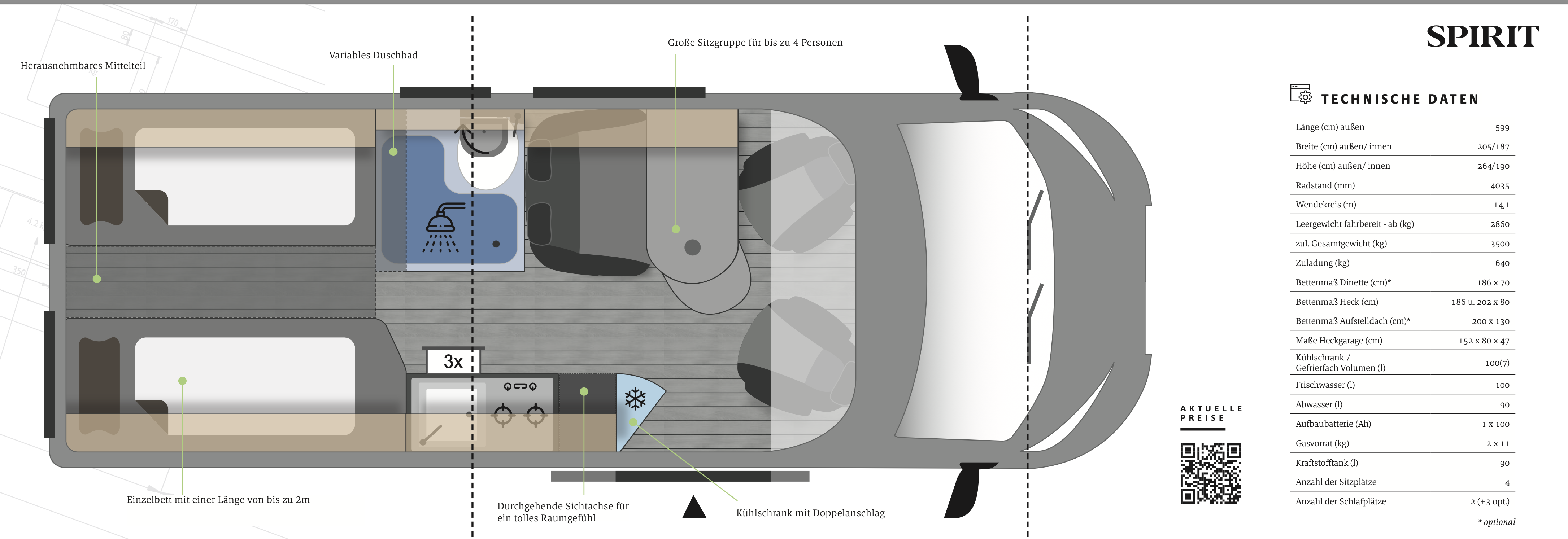 Erlebe Komfort in einer neuen Dimension. Trotz seiner kompakten Größe setzt der „Spirit“ neue Maßstäbe in Sachen Reiseluxus.